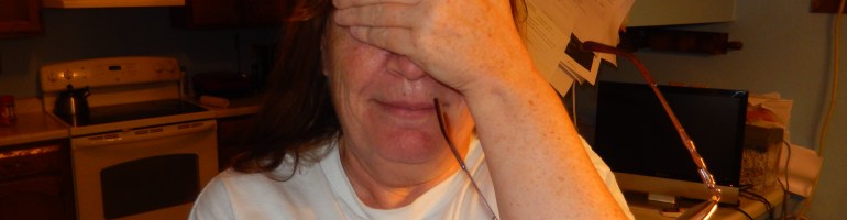 My first reaction to that announcement was to take off my glasses, squeeze my eyes shut as tight as I could and cover them with my hand! The term “tap the eyeball” is not a good one for a woman like me who doesn’t wear contacts because I can’t touch my eye to put them in. Although I tried to hold my eye open, my eyelid was quicker than their machine every time. So the doctor decided they would try it a different way. “Now, I’m going to use a light to measure that eye pressure,” he told me. “But I need to put in these eye drops. Please hold your eye wide open so I can drop them in.”