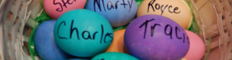 I didn’t give up. I dyed all those eggs and not one single name showed up. What was I going to do? I had a bunch of eggs with no names on them that looked like they had been attacked with a colorful version of the plague. But they were dyed. And in the end, I discovered that I’ve wasted a lot of years with those wax crayons when a nice black sharpie marker will do the job so much better! I hope everyone had a great Easter and that you didn’t all need three dozen (plus 2) eggs to get a decent batch dyed….and that your dye wasn’t old enough to vote! Have a good week!